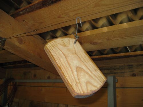После этого надеваем на шуруп, крючок изготовленного нами ранее проволочного приспособления.