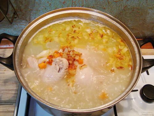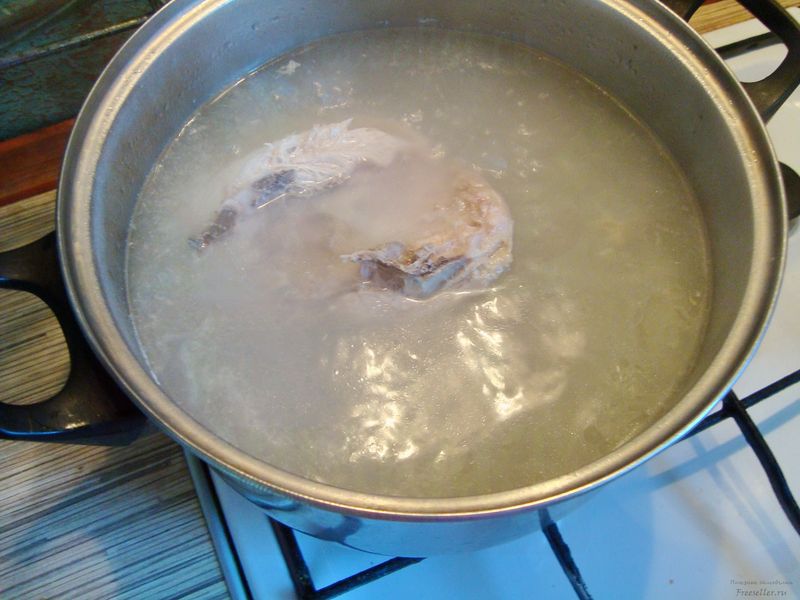 Сначала отварите курицу примерно 30-40 минут. Мясо предварительно тщательно вымойте.