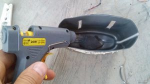 Затем берем магнит и при помощи термопистолета приклеиваем его на дно нашего контейнера, клея лучше не жалеть и хорошенько обмазать магнит со всех сторон.