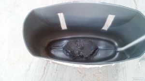 Первым делом отрезаем ножом верхнюю часть от канистры (размер делайте на свое усмотрение), так же я один край немного закруглил (на фото видно), что бы удобнее было рукой доставать необходимый материал.