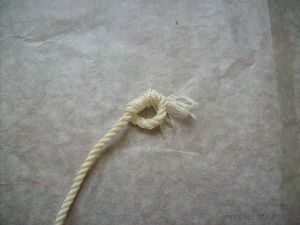 4. Закончив вязание, закрепляем конец верёвки узлом.