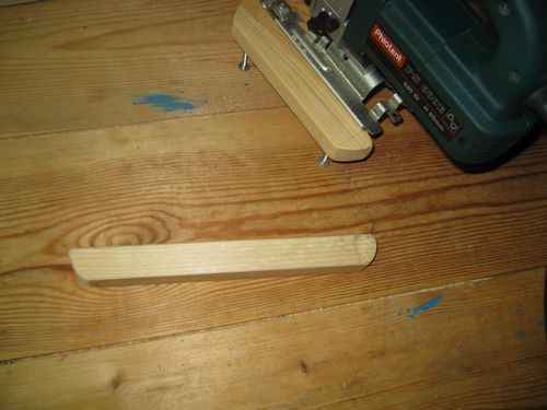 Сначала с помощью лобзика, отпиливаем и закругляем у нашей дощечки уголки для большей безопасности. Хотя это в принципе и не обязательно.