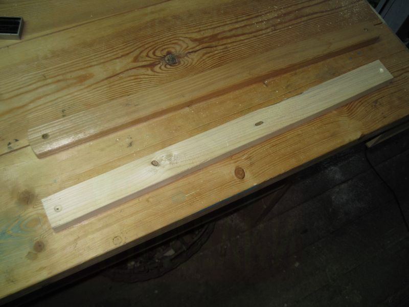 Теперь готовим две планки с просверленными отверстиями по бокам, для придания жесткости полке из оргалита.