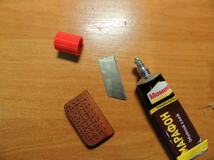 - небольшой кусок из дощечки размером 5*3 см, который мы отпиливаем имеющимся инструментом.