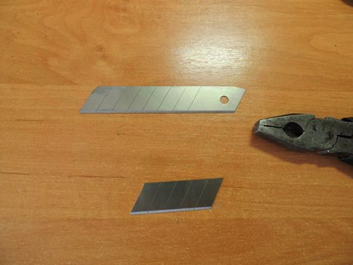 Далее берем лезвие с канцелярского ножа, обламываем, оставляя 5 шт. что будет равняться 5 см длины.