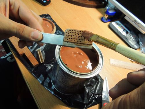 Проходим наждачной бумагой, красим декоративным покрытием.