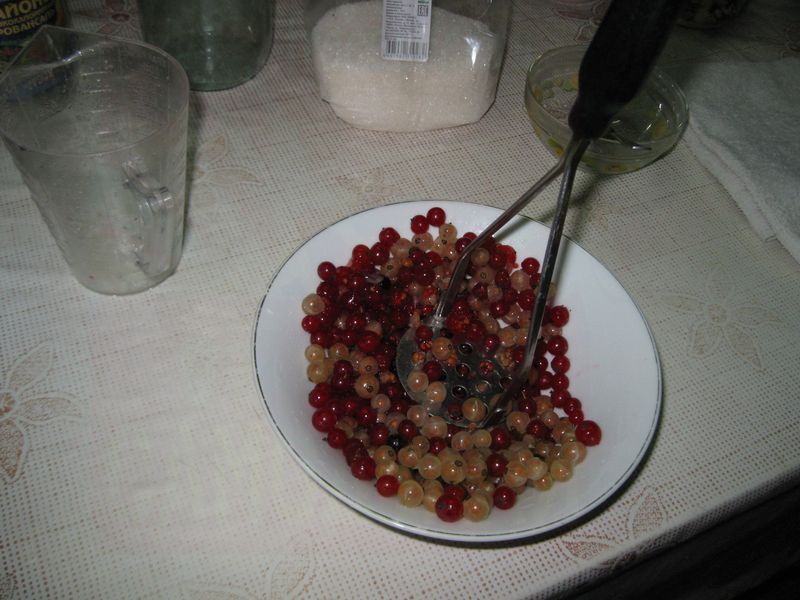 Собранные ягоды, перекладываем в глубокую тарелку и мнем толкушкой.