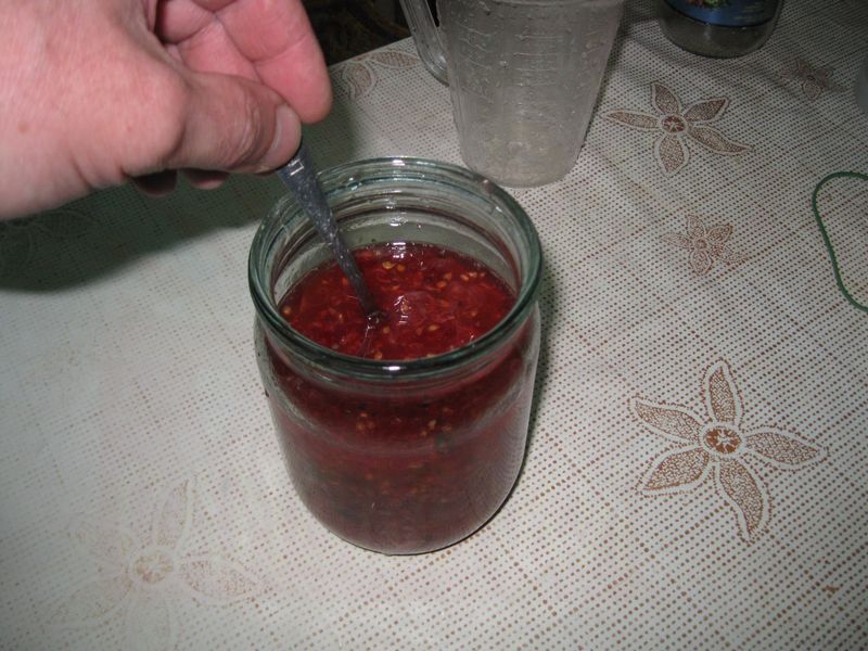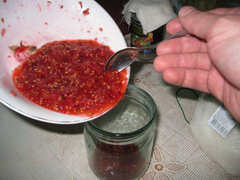 Полученную мезгу вместе с соком, перекладываем в пол-литровую банку.