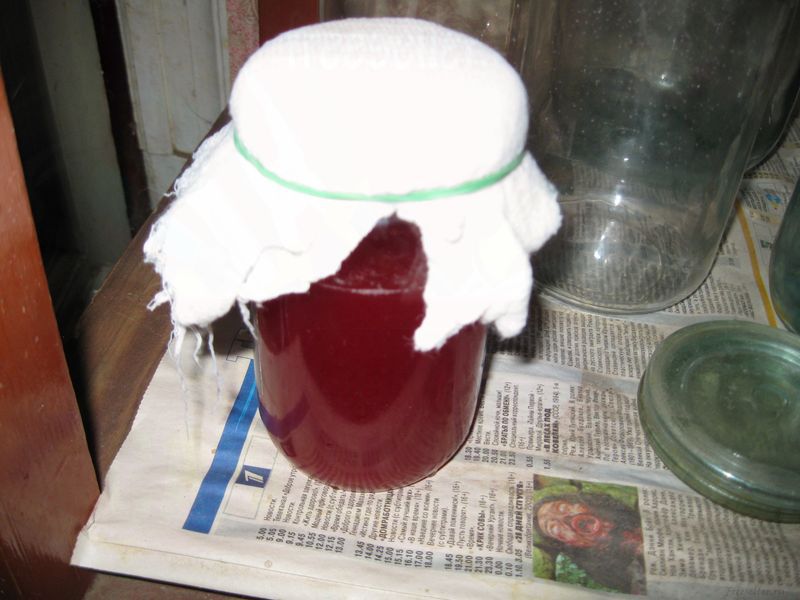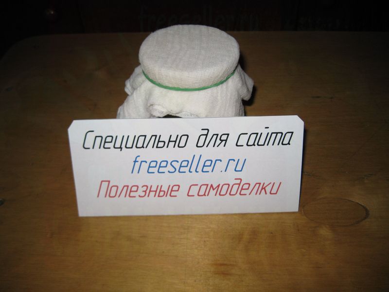 На эту банку также надеваем марлевую крышку с резинкой (предварительно тщательно промыв марлю с мылом и прополоскав ее) и опять ставим в затененное место.