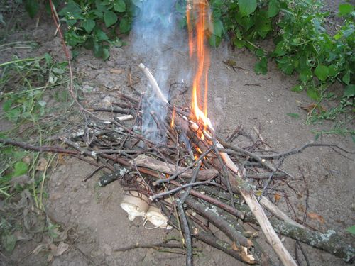 Для начала попробуем развести небольшой костер на земле.