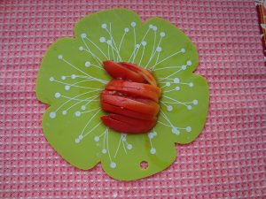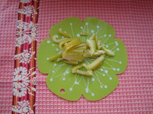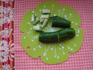 Сначала приступаем к нарезанию овощей. Все ингредиенты должны дать оттенок вкусу блюду, поэтому овощи режем довольно крупно и в продольном виде.