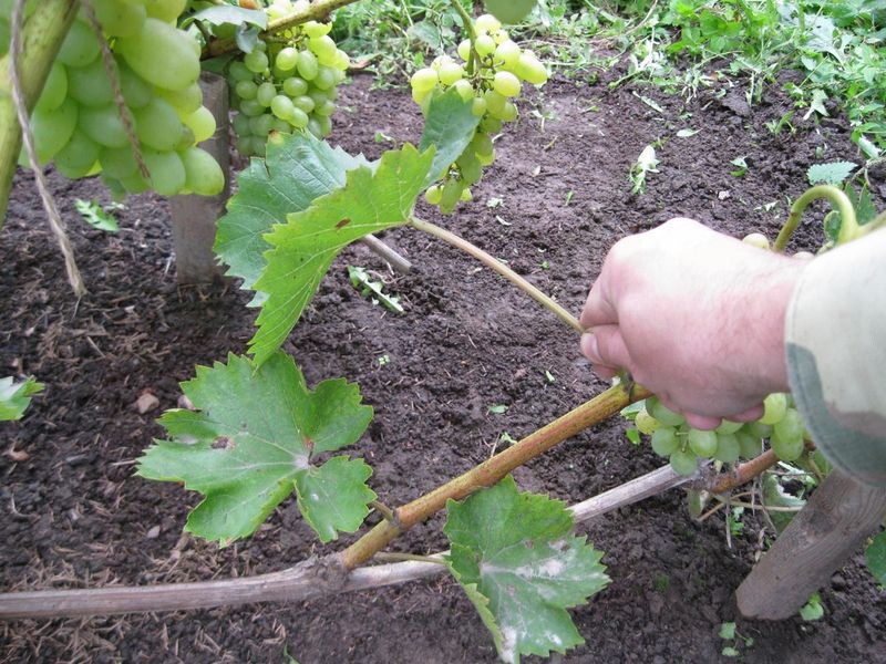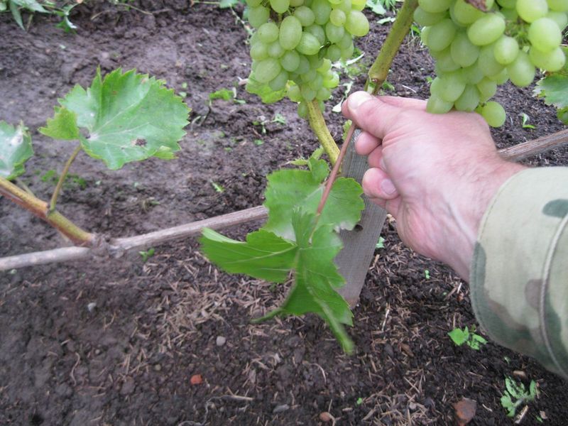 Желательно также, чтобы и вокруг виноградного куста, особенно с солнечной стороны, не было высокой травы или других высоких растений, которые могли бы затенять куст.