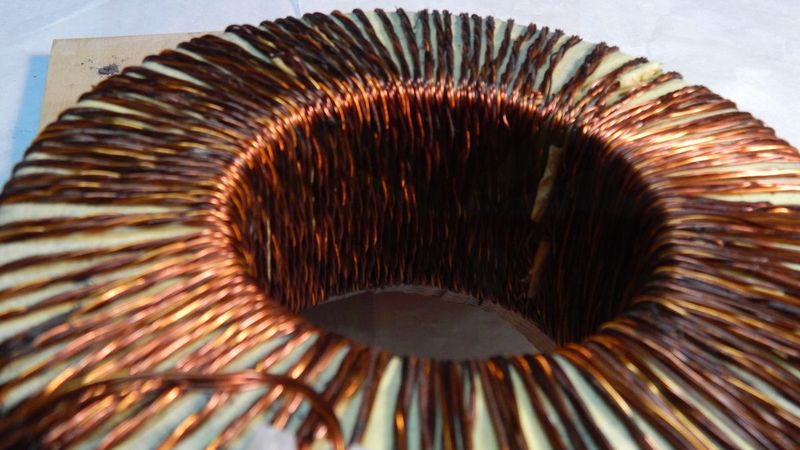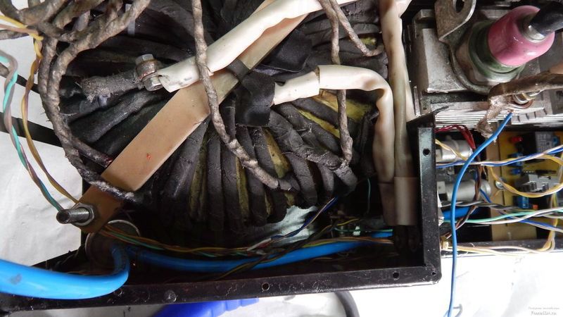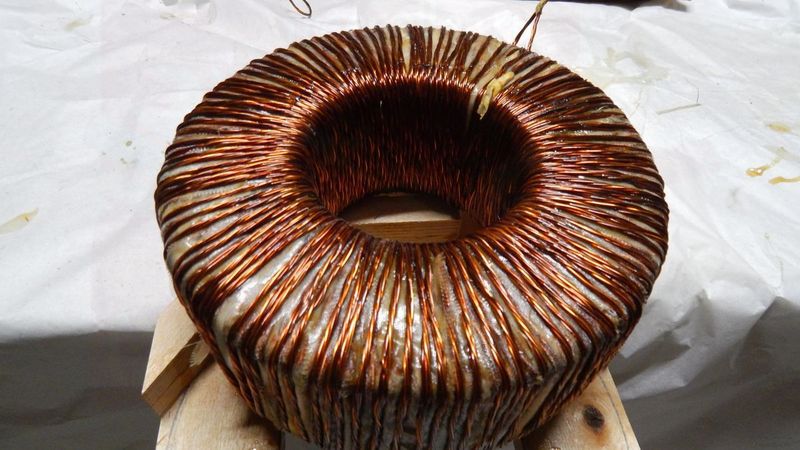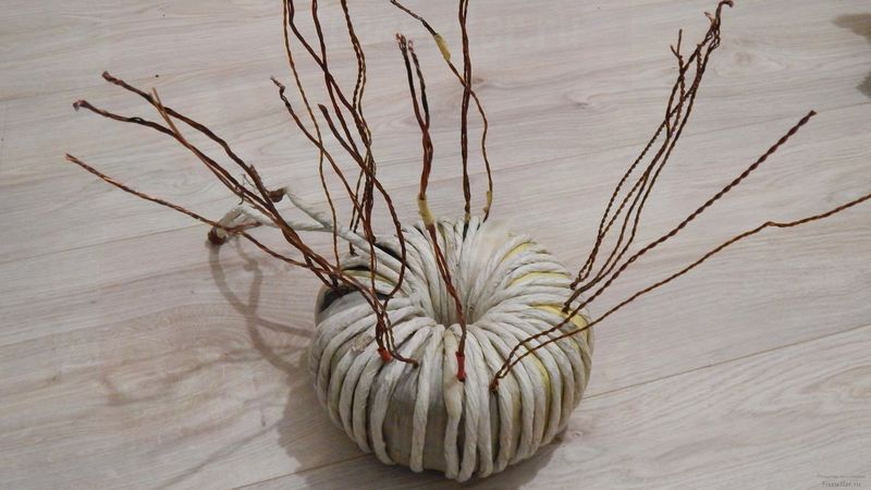 Дальше мотаем дроссель, который является неотъемлемой частью полуавтомата. Он служит для сглаживания импульсов тока, и без него полуавтомат не будет работать полноценно. Он намотан на трансформаторе ТС 250 от телевизора.