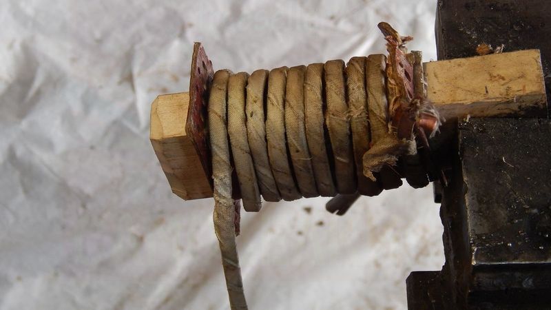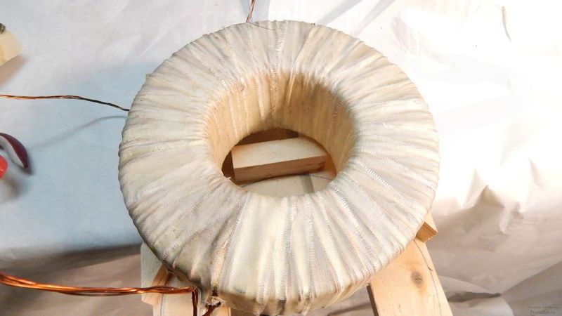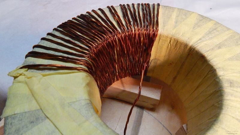 Каждый слой пропитываю лаком и мотаю сверху Х/Б тканью или изолентой.