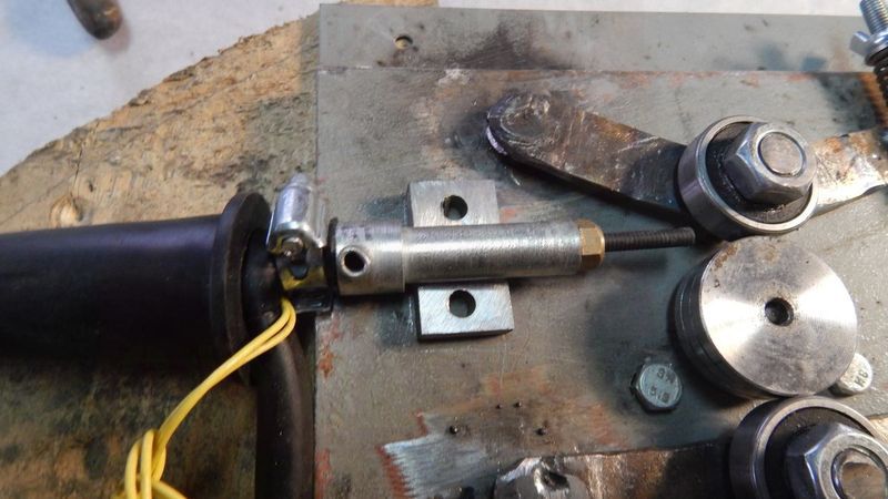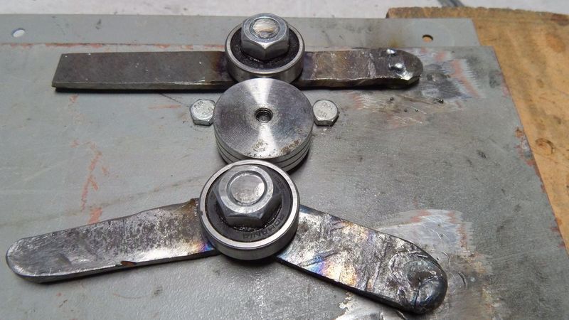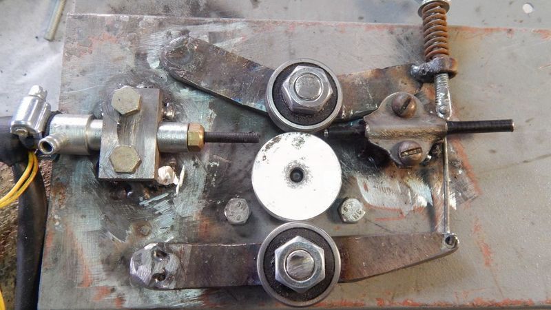 Для того, чтобы на ось двигателя было меньше нагрузки - поставил два подшипника, которые между собой соединяются и прижим к ролику регулируется винтом.