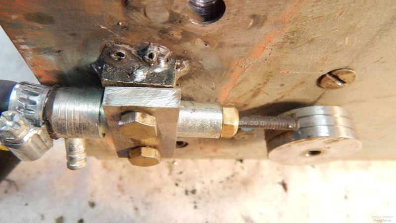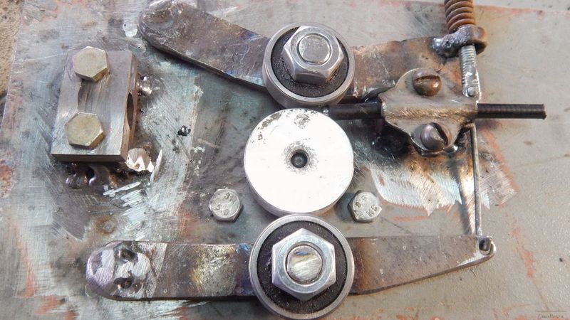 Подающий ролик купил готовый, но его также можно выточить у токаря.