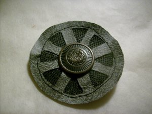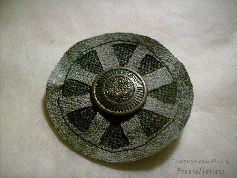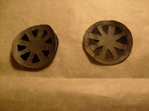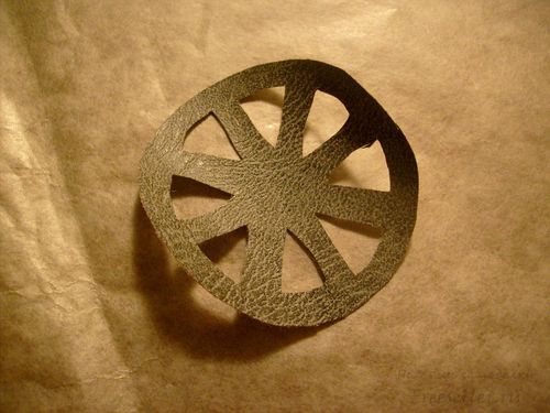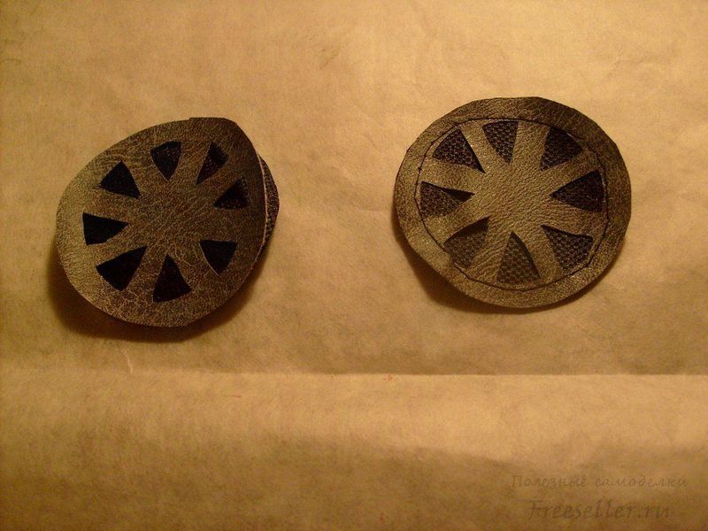 3. Из плотного дерматина выкраиваем круг(и) такого же размера, но без прорезей.