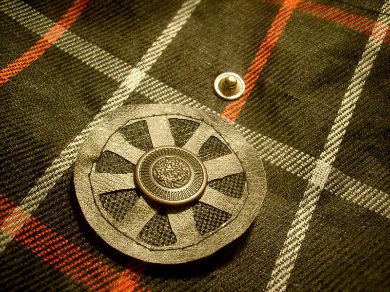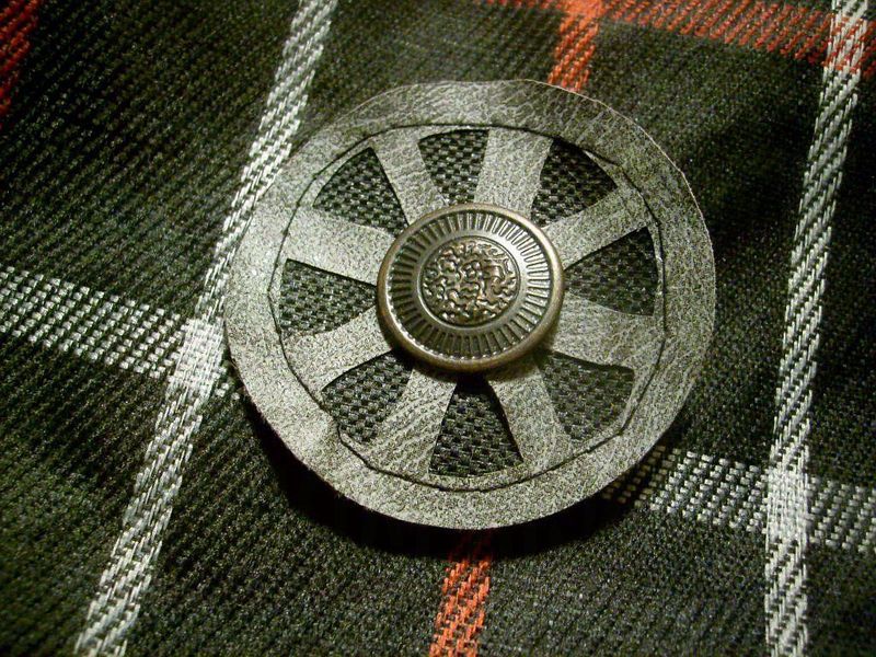 2. По шаблону вырезаем из мягкого дерматина деталь (или несколько - по количеству свободных кнопок на вашей сумке).