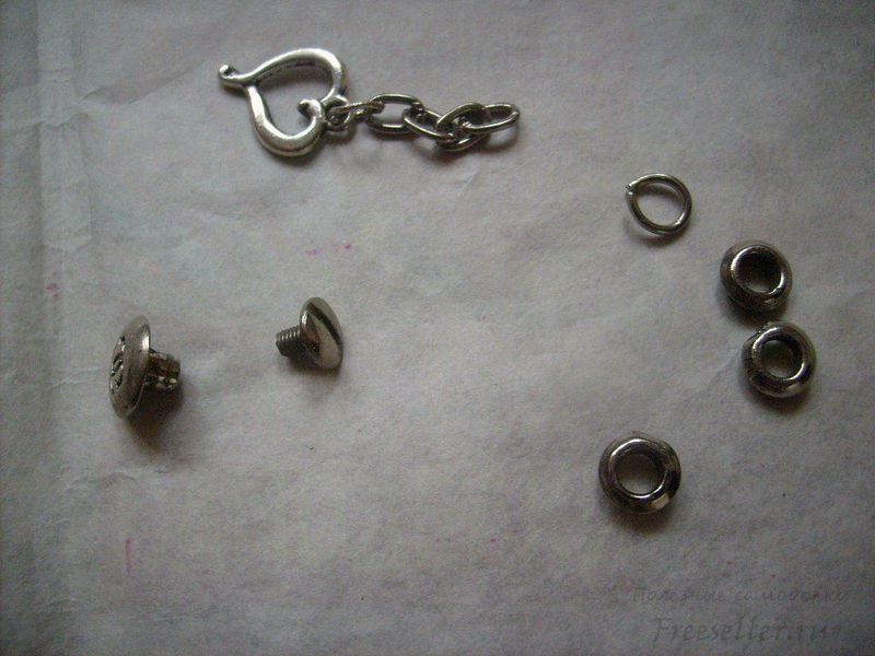 Сшить такой чехол совсем несложно. Даже начинающий мастер вряд ли испортит достаточно дорогой сам по себе материал. Кроме лоскута натуральной замши, нам понадобятся нитки, чертёжные и швейные принадлежности, а также фурнитура - разборное винтовое крепление для ременных пряжек, подвеска с цепочкой и соединительным колечком, маленький люверс.