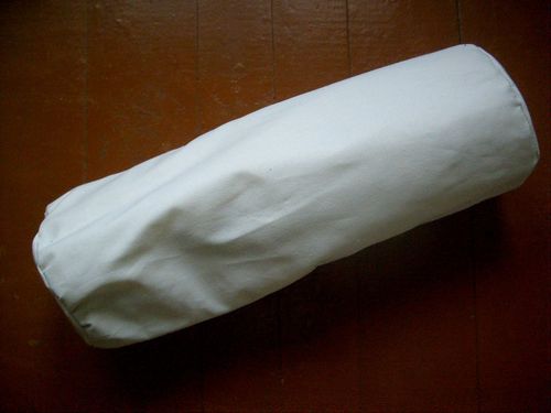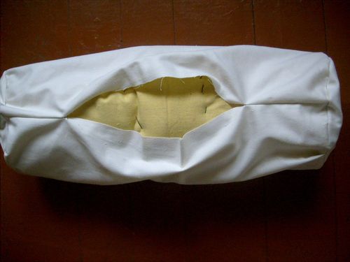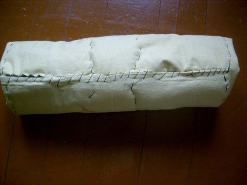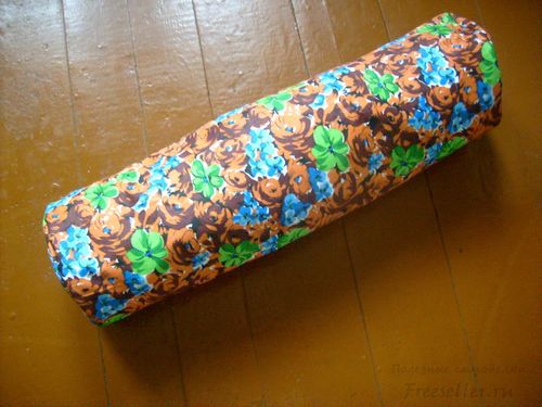 Надеваем наволочку на валик. Если сшить такую же для диванной подушки, то получится симпатичный комплект.