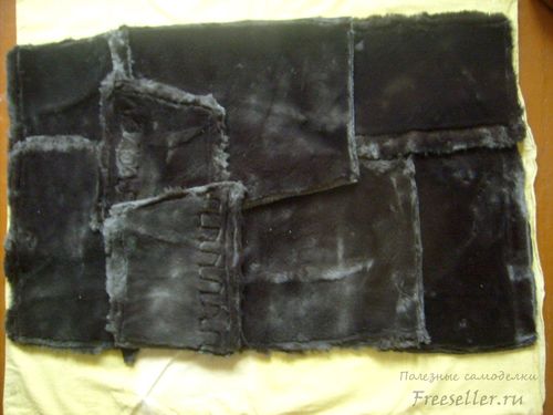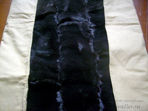 1. Выкладываем мех на полотняную основу, оставляя по краям запас сантиметров в десять.