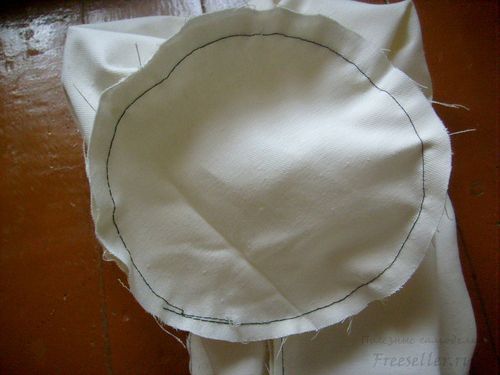 4. Снимаем с него мерки - длину, обхват и диаметр круглой боковой стороны. Из плотной ткани выкраиваем детали соответствующего размера - основную в виде прямоугольника и две круглые боковины.