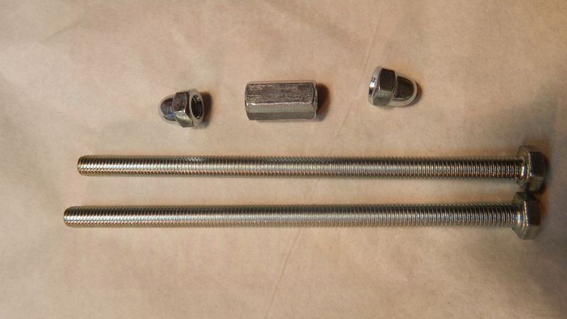 Для удобства я срезал концы болтов и накрутил туда гайки - колпаки, чтобы не резало руки. Этого делать не обязательно, но так работать будет приятнее.