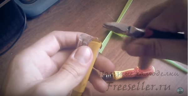 Далее нам нужна зажигалка с фонариком на светодиоде. Естественно разбираем зажигалку и вынимаем фонарик.