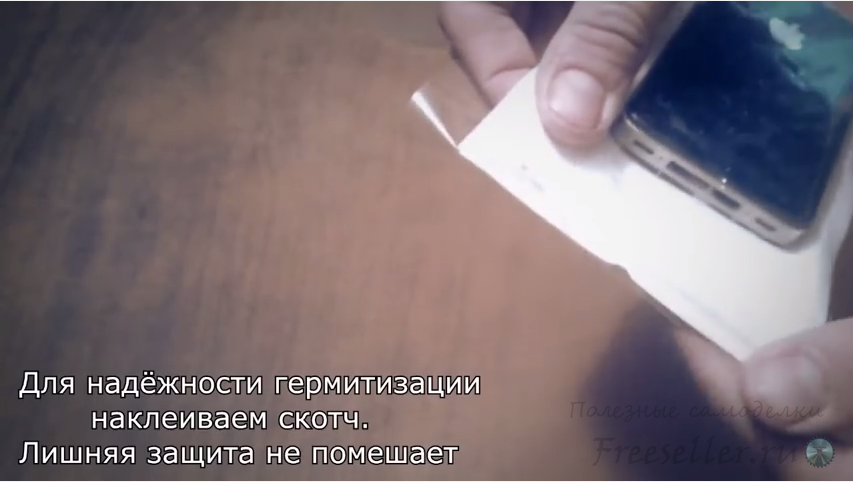 Да-да именно скотч. Для съёмки на небольшое время вам этого вполне хватит, он не отклеится. Но перед тем как погружать телефон в воду проверьте ваш кейс, предварительно засунув туда бумагу и подержать пару минут под водой, чтобы проверить его на герметизацию.