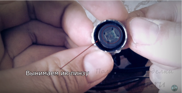 Далее разбираем объектив и находим там ИК-линзу. Её нужно извлечь, она нам не нужна.