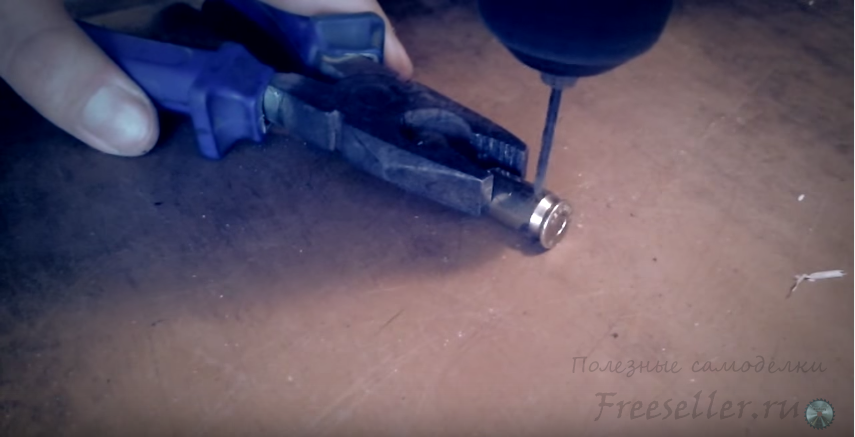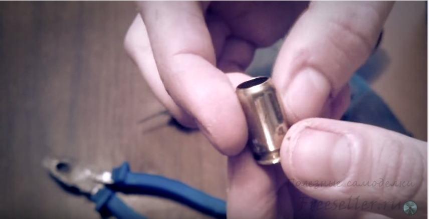 Далее сверлим отверстие под провод в гильзе.