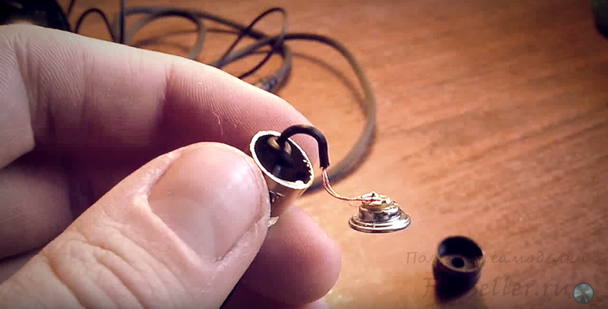 Далее меняем корпус на гильзу и паяем динамик обратно.