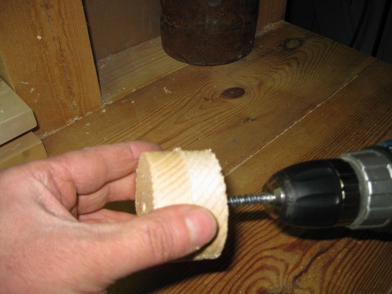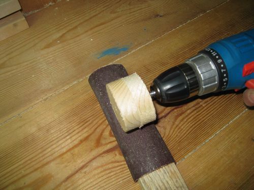 Кроме того, навернув такую заготовку на оправку, зажатую в патроне дрели, можно дополнительно обстрогать ее со всех сторон ножом (естественно при выключенной дрели), для того, чтобы во время самой токарной обработки, оставалось снять как можно меньший слой древесины.