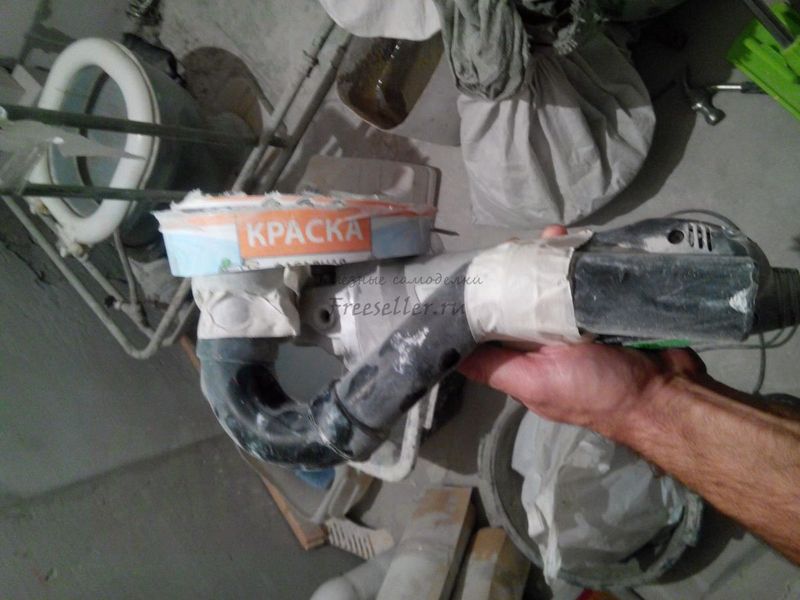 Вот и пошла в ход смекалка и руки. Буквально за 1 час был изготовлена самоделка из обычного пластикового ведра от краски, сифона от старой советской ванны, и обыкновенного скотча и малярной ленты.