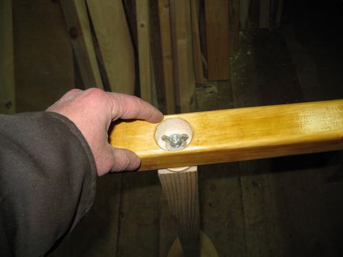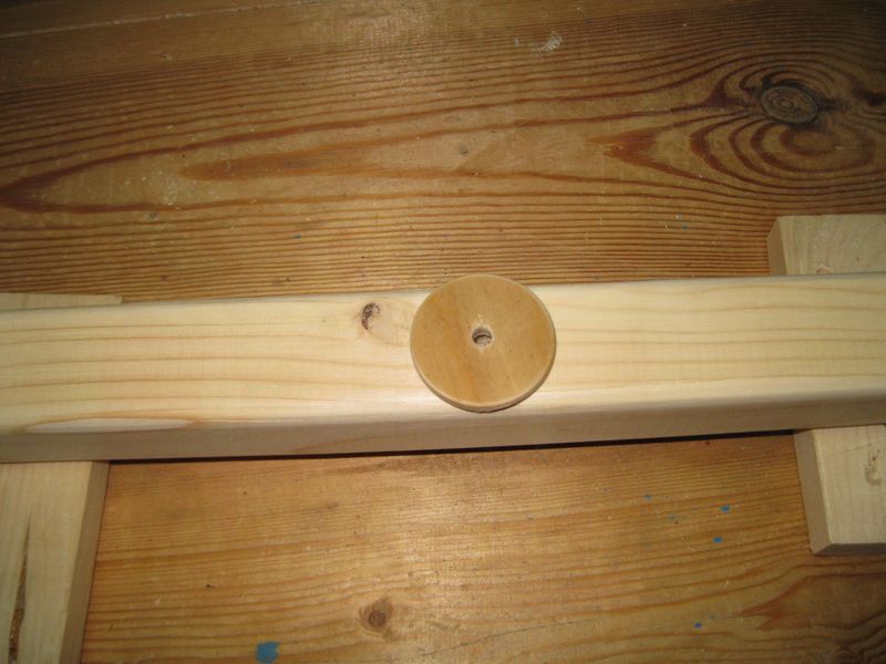 Теперь берем, также хорошо обработанную наждачной бумагой фанерную шайбу. Эту шайбу мы установим под вешалку, чтобы она легче поворачивалась.