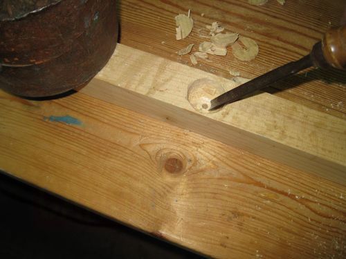 Удаляем лишнюю древесину из отверстия с помощью полукруглой стамески.