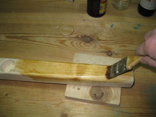 Поэтому покрываем вешалку одним слоем лака по дереву.