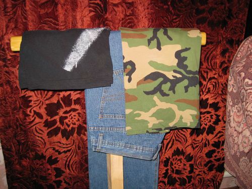 Простенькая горизонтальная вешалка для одежды, сделанная на базе универсальной подставки, изготовление которой описывалось ранее.