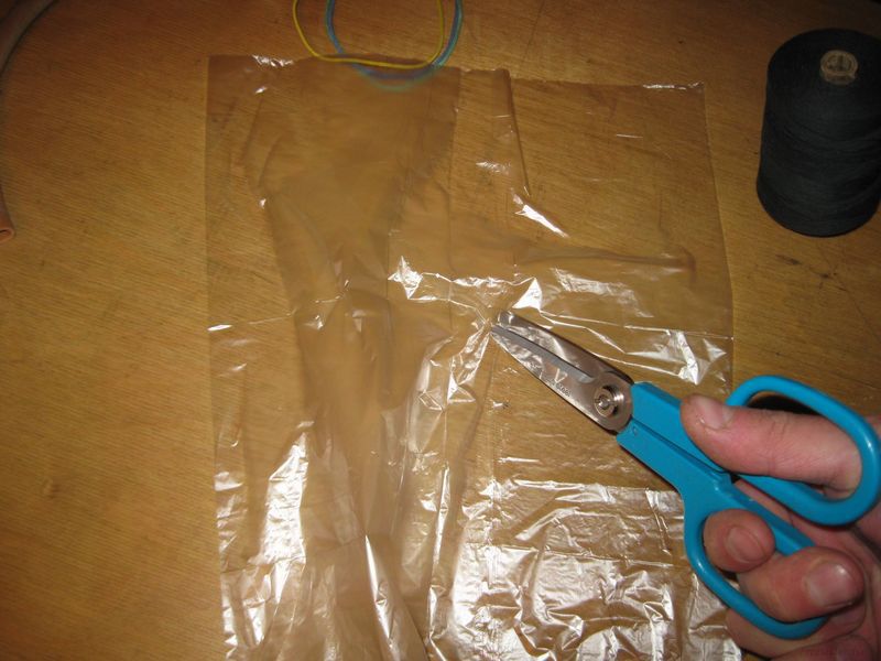 Примерно в центре пакета, делаем ножницами небольшую прорезь.
