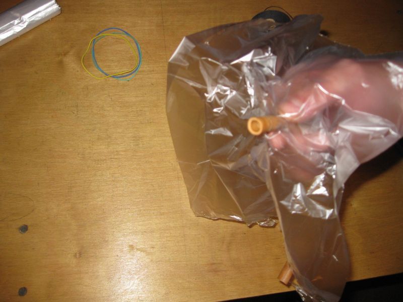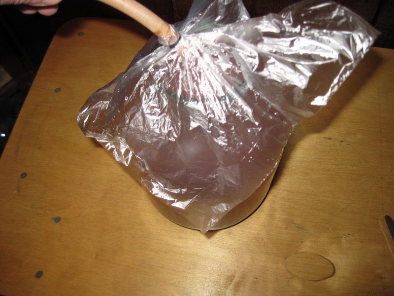 Эти две причины легко исправить, достаточно покрепче примотать нитками пакет к резиновой трубке, или же получше обмотать резинками концы пакета на горлышке банки. Здесь также можно вместо канцелярских резинок, использовать другие более длинные резинки, или же вообще обмотать горлышко веревкой, а может даже изолентой или скотчем (хотя, я думаю, что это излишне).