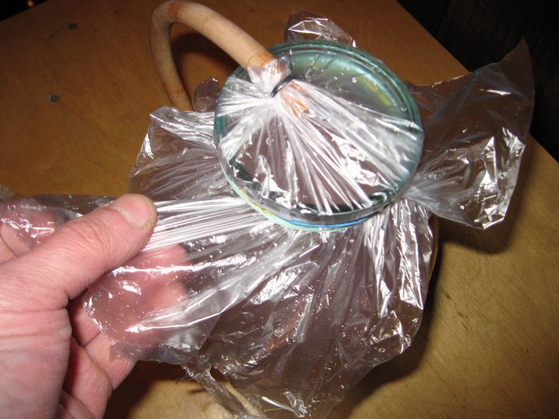 Таким образом, мы герметизируем полиэтиленовый пакет вокруг горлышка банки.