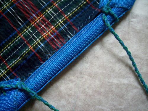 6. Рамкой, обеспечивающей жёсткость конструкции, нам послужат трубочки. Вручную пришиваем их, обернув стропой.