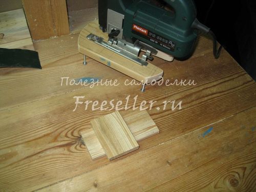 Сначала производим разметку нашей дощечки (ширина которой, должна соответствовать ширине картонного молочного пакета) и распиливаем ее на две части.