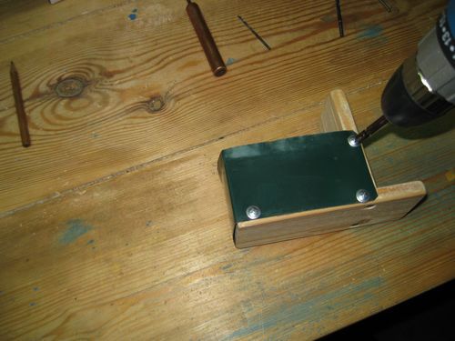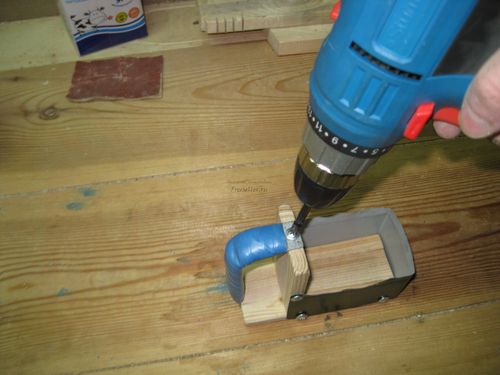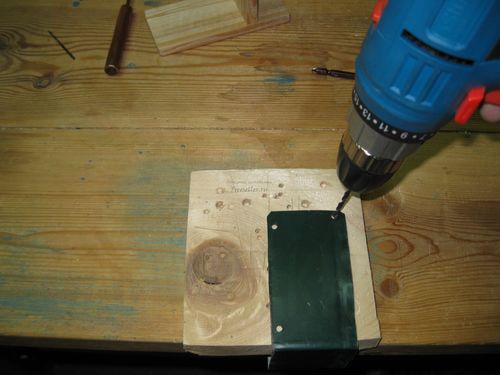 Надеваем его на деревянную основу, и по его отверстиям просверливаем небольшие отверстия в деревянной основе сверлом диаметром 2,5-3 мм. Эту нужно для того, чтобы при заворачивании шурупов в достаточно тонкие дощечки деревянной основы, они не лопнули.
