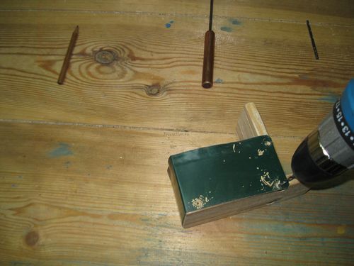 Затем просверливаем в длинной части отверстия под шурупы сверлом диаметром 4 мм.
