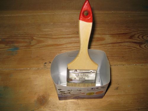 Кроме того, использование картонных пакетов из-под молока в качестве емкостей под краску весьма удобно, по той причине, что они имеют прямоугольную форму, а значит, в этом случае можно использовать достаточно широкие кисти.