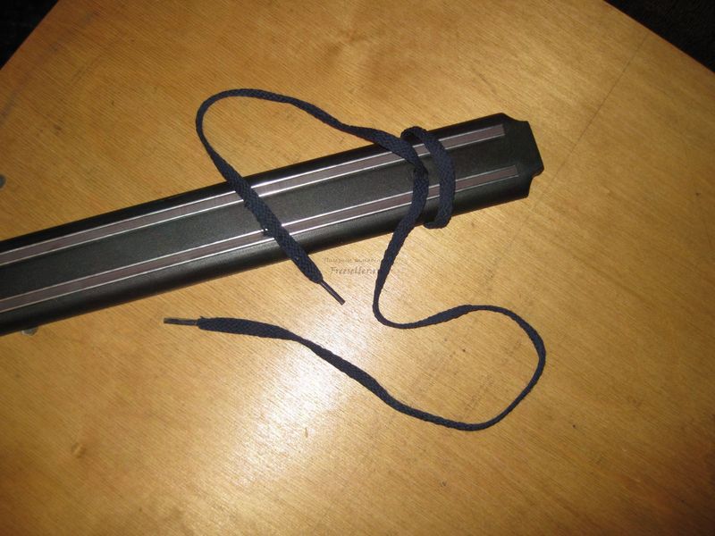 Верхний конец держателя я покрепче привязал к ремню, а на нижнем конце оставил шнурок для того, чтобы привязывать его к бедру.