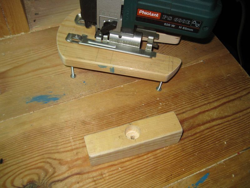 И отпилил часть бруска с отверстием посередине лобзиком, по длине равную ширине доски.