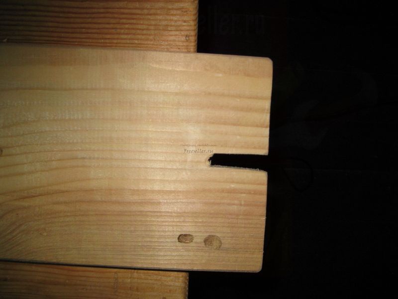 Для этого поставим две доски под прямым углом друг к другу и введем мебельный болт в паз короткой доски.