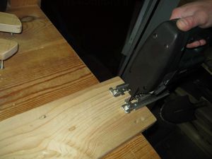 А затем пропилил лобзиком паз от торца доски до этого отверстия.
